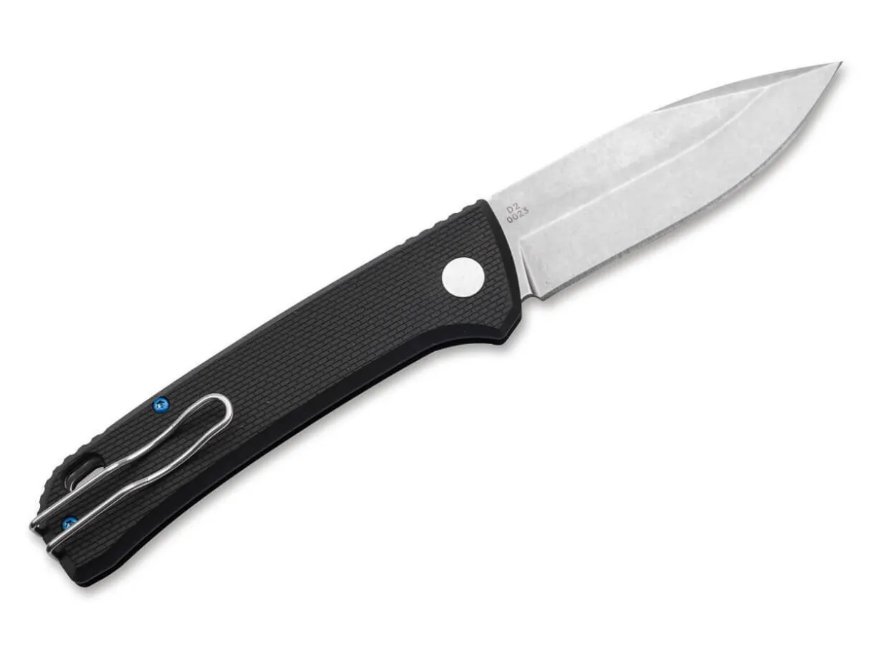 Tagliche Routine War Gestern – Das Boker Plus Frnd Entflieht Dem Alltag Und Erfrischt Als Abwechslungsreiches Und Schlankes Automatikmesser Mit Edc Charakter. Die Droppoint-Klinge Aus D2 Offnet Per Druckknopf Und Ist Mit Einem Kernigen Stonewash-Finish Versehen, Das Kleine Gebrauchsspuren Selbst Nach Harter Benutzung Nahezu Verschwinden Lasst. Der Robuste Button Lock Mit Zusatzlichem Schieberegler Sichert Die Klinge Wahrend Der Benutzung Doppelt Und Minimiert Die Fluchtgefahr Widerspenstiger Schneidarbeiten Erheblich. Auch Ein Versehentliches Offnen In Der Hosentasche Gehort Dank Der Sicherung Der Vergangenheit An. Die Texturierten Griffschalen Aus Grivory Liefern Selbst Unter Nassen Bedingungen Satten Halt Und Unterstreichen Die Leichtfusigkeit Des Taschenmessers. Dekorative Akzente Setzen Indes Die Anodisierten Schrauben Sowie Die Blau Umrandete Klingenachsschraube. Mit Fangriemenose, Drahtclip (Tip-Up/R) Und Hochwertigem Nylon Etui.