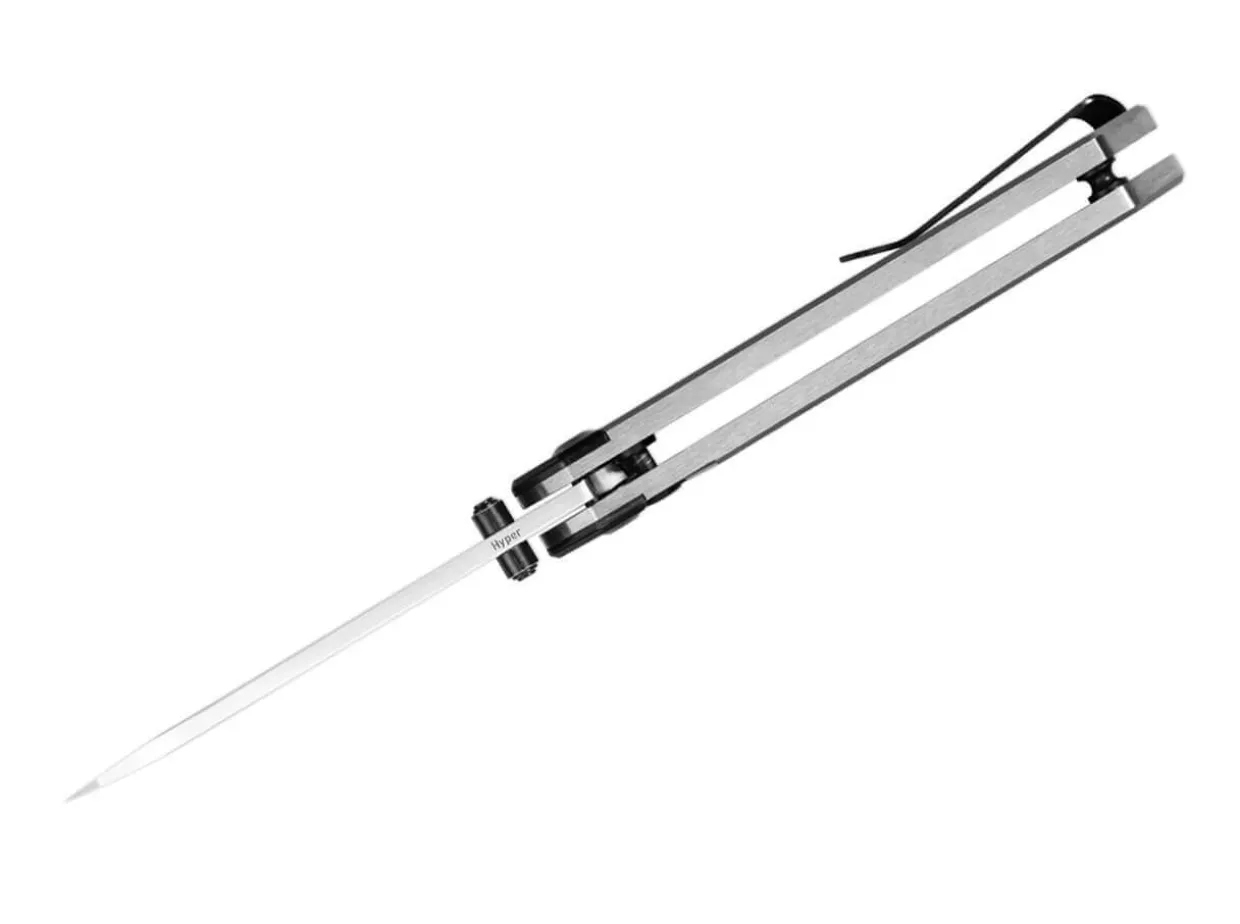 The Kizer Hyper Moves Into A Whole New Hemisphere Of Modern Edc Knives As A Result Of Futuristic Design, Outstanding Performance And High Practicality. With Its Satin-Finished Blade Made Of Elmax, The Pocket Knife Glides Almost Weightlessly Through Daily Cutting Tasks. The Folder Is Opened Via The Thumb Stud On Both Sides, Which Is Countered By The Intuitive Button Lock As A Locking Mechanism. The Visual Highlight Is The Two-Part Handle Made Of Grey And Black Titanium That Expresses Architectural Modernity. The Frame-Like Construction Impresses With Its Low Weight And Balanced Feel. With Tip-Up/R Clip.