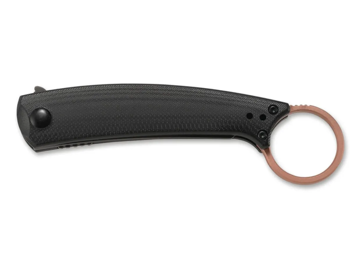 In The Crkt Ibi, Designer Jesper Voxnaes Skilfully Combines Some Typical Elements Of Other Knife Types. The Ball-Bearing Tanto Blade Made Of D2 Has A Black Stonewash Finish. The Slightly Curved And Solid Handle Made Of G10 Fits Perfectly In The Hand And Is Finished Off With The Typical Karambit Ring Made Of Copper. The Folder Opens With A Flipper And Secures The Blade With A Linerlock.