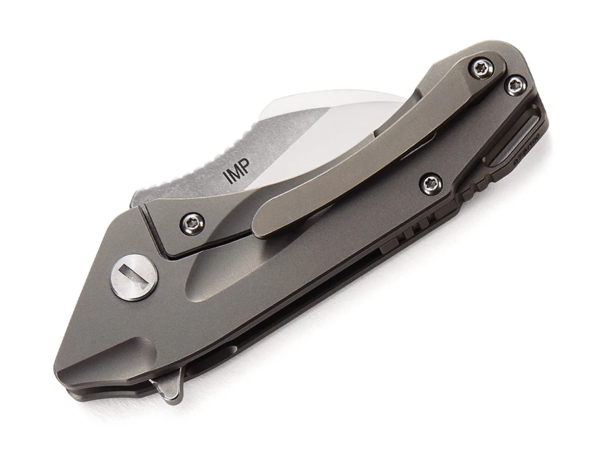 The Bestech Imp Is A Compact Utility Knife Suitable For Tough Cutting Tasks. The 3D Milled Handle Made Of Sturdy Titanium. The Back Holds The Sturdy Framelock. The Short Blade Made Of Powder-Metallurgical Cpm-S-35Vn Opens Via Flipper. With A Lanyard Hole And Clip (Tip-Up).
