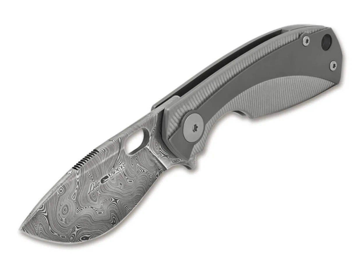 This Exclusive Version Of The Lille By Jesper Voxnaes Has A Blade Of Powder Metallurgical Damasteel, Which Offers Excellent Corrosion Resistance As Well As Outstanding Hardness And Edge Retention – Perfect For Everyday Use. The Damascus Pattern Is Bjork Twist. The Titanium Handle Has An Overlay Also Made Of Titanium, Just As The Clip And Spacer Of The Framelock Knife. The Blade On Ball Bearings Can Be Opened With A Flipper Or Thumb Hole. An Sleek And Unconventional Folder Giving New Meaning To The Term Gentleman Knife. The Lille Damasteel Is Delivered In A Oval Wooden Box.