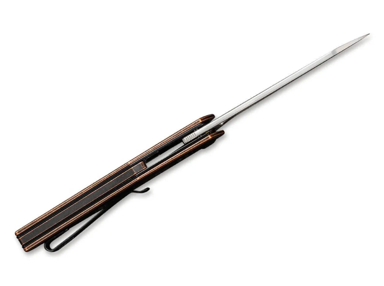 The Civivi Mckenna Copper Damascus By Elijah Isham Is A Damascus Linerlock With A Copper Scales. The Ball-Bearing Damascus Blade Opens Either By Front Flipper Or Thumb Hole. The Slim Folder Is Equipped With A Convertible Clip (Tip-Up/L-R).