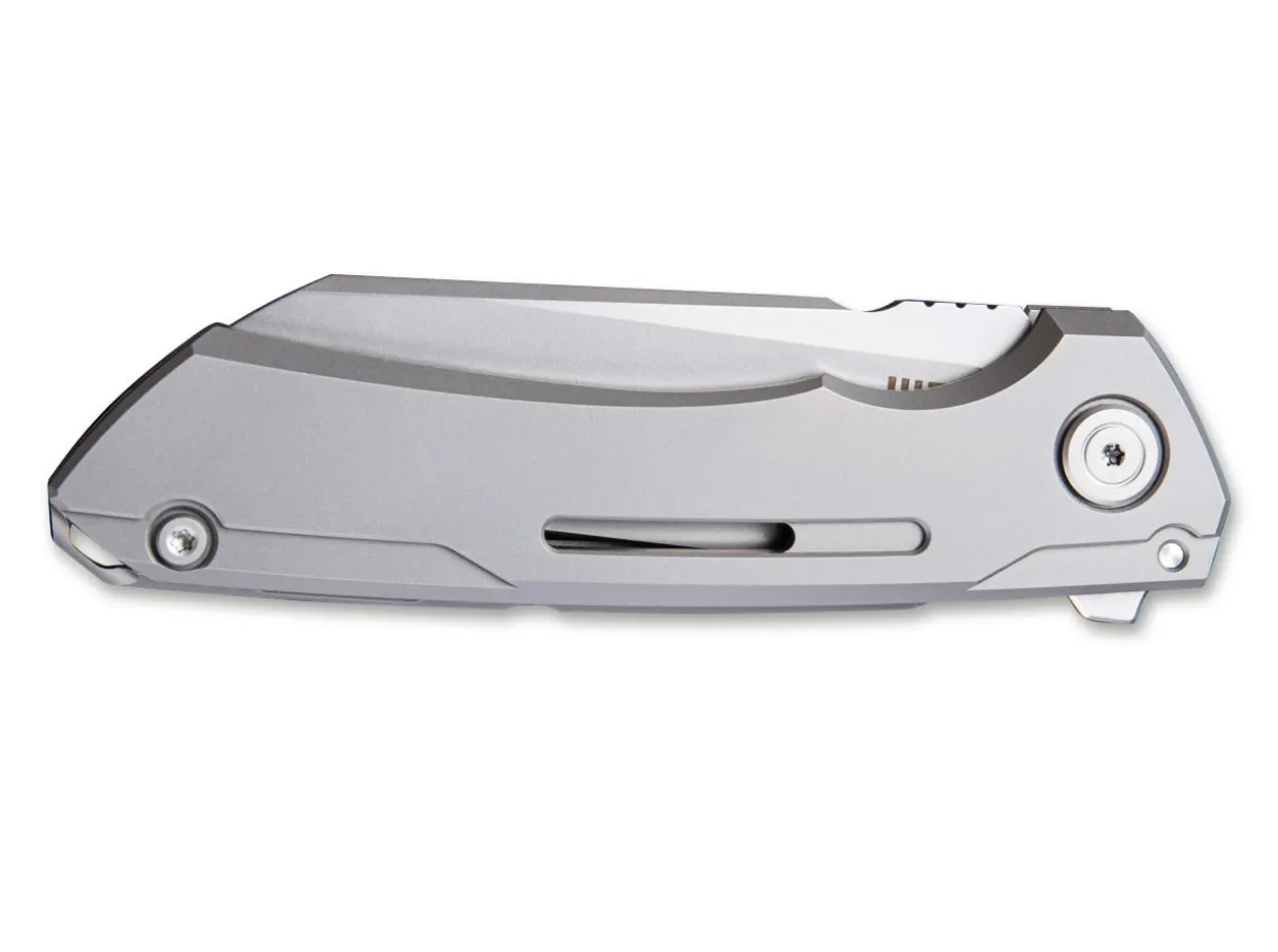The We Knife Mini Buster Gray Demonstrates Impressively That A Simple Design Does Not Have To Impact On Performance. Its Powder-Metallurgical Sheepfoot Blade Made From Cpm 20Cv Offers Superior Edge Retention And Deploys Directly With The Help Of The Flipper. The Framelock Is Stylishly Framed In The Elegant Titanium Handle And Allows Safe Handling. With Clip (Tip-Up) For Pocket Attachment And Lanyard Hole.