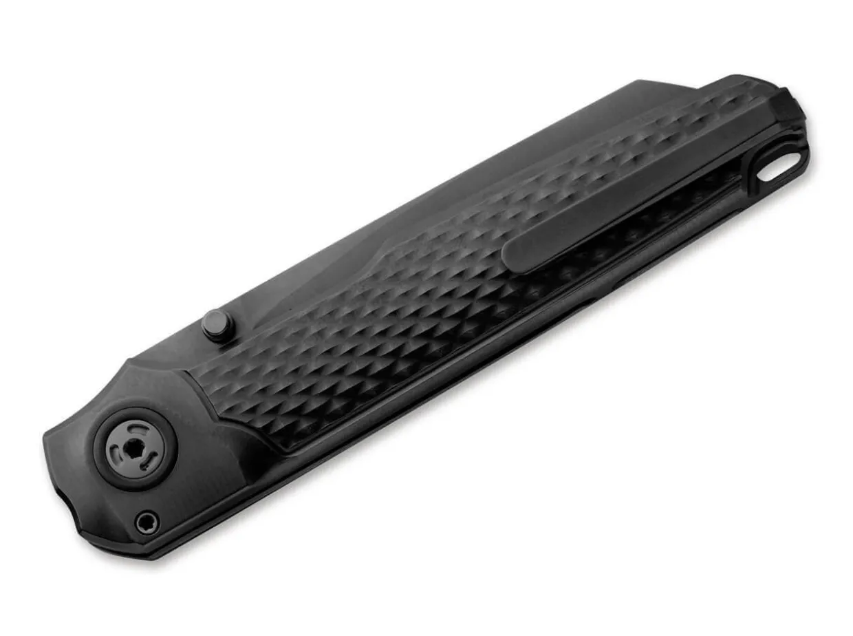 Kraftstrotzend Und Voller Temperament: Das Mkm Miura Scharrt Bereits Wie Ein Kampfeslustiger Stier Mit Den Hufen. Dank Seiner Klinge Aus M390 Nimmt Das Elegante Taschenmesser Jegliche Schneidarbeiten Spielend Auf Die Horner. Dabei Offnet Der Daumenpin Das Messer Geschmeidig Und Lediglich Der Button Lock Kann Die Schwarze Sheepfoot Klinge Bandigen. Geradezu Sanftmutig Zeigt Sich Der Schwarze Griff Aus Texturiertem Titan, Der Uber Eine Fangriemenose Sowie Einen Umsetzbaren Tip-Up Clip Aus Titan Verfugt.