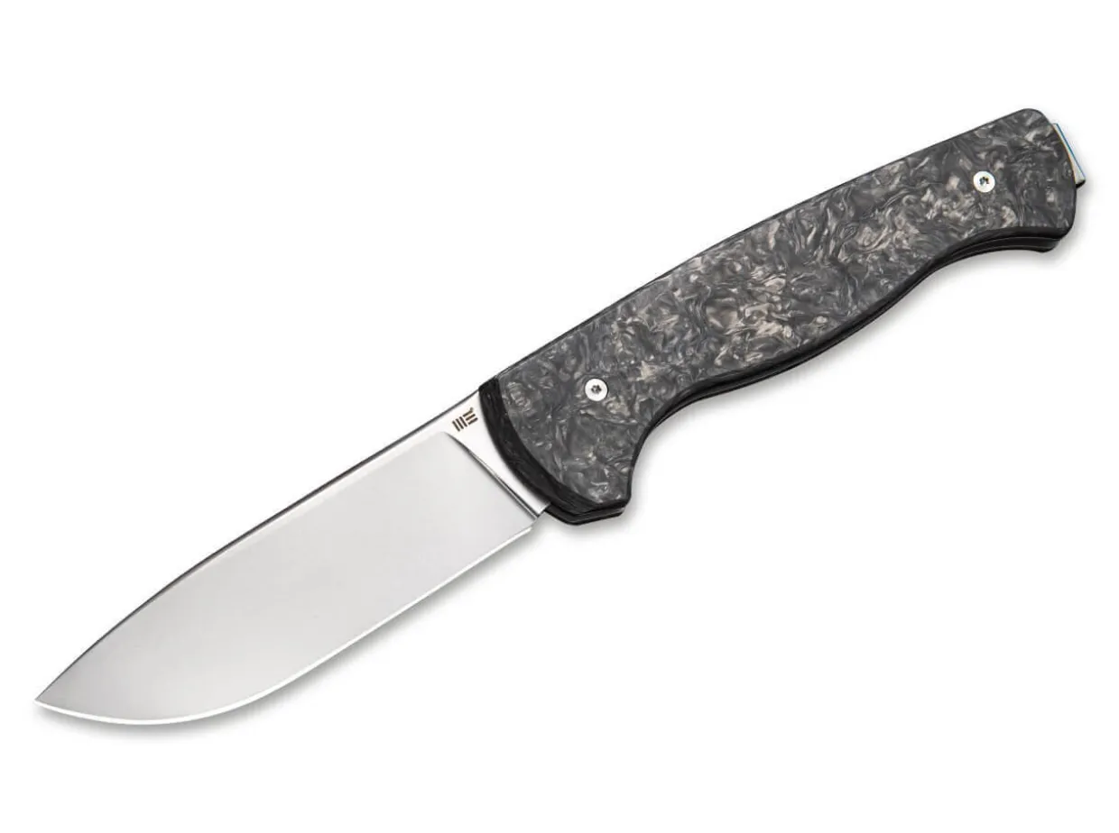 Das Feine Slipjoint-Messer Mrf Von We Knife Entstand In Zusammenarbeit Mit Messermacher Markus Reichart, Der Vor Allem Fur Feststehende Messer Bekannt Ist. Dieses Messer Ist Mit Einer Breiten Droppoint-Klinge Aus Cpm-S-35Vn Ausgestattet. Die Polierte Perlgestrahlte Klinge Ist Mit Einem Grosen Griff Aus Schwarzer Marmorierter Kohlefaser Gepaart, Die Das Gewicht Reduziert Und Dem Messer Eine Schone Asthetik Verleiht. Fangriemenose Und Clip (Tip-Up) Sorgen Dafur, Dass Das Messer Immer Griffbereit Ist.