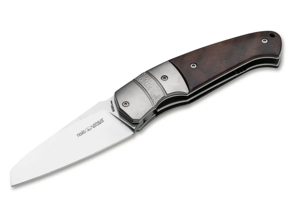 The Viper Novis By Fabrizio Silvestrelli Is A Successful Combination Of Elegance And Practicality. The Solid Construction Has Hidden Strength For Everyday Tasks, While Its Clever Lines Give It An Elegant, Eye-Catching Look. The Modified Wharncliffe Blade On Ball Bearings Is Opened With A Subtle Front Flipper And Secured With A Linerlock. Powder-Metallurgical Bohler M390 Ensures The Highest Level Of Edge Retention. Stainless Steel Plates And A Titanium Backspacer Create A Rugged And Elegant Look. With Engraved Titanium Bolsters And Ziricote Scales.