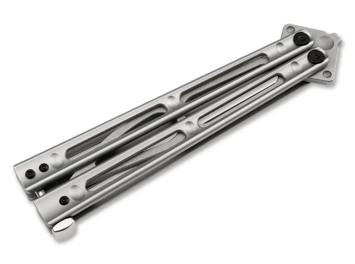The Boker Plus Papillon Trainer Corresponds To The Construction Of The Real Balisong Knife, But Is Supplied With A Blunt Dummy Instead Of A Real Blade. Like The Original, The Trainer Is Supplied With Skeletonised Stainless Steel Handle Halves With A Matt Beadblast Finish. Also Known As The Butterfly Knife, The Balisong Owes Its Name To The Simple Folding Mechanism Of The Split Handle, Which Is Much Less Susceptible To Dirt Than Other Mechanisms. The Ball-Bearing Clippoint Blade Of The Trainer Is Made Of 420 Steel And Is Supplied With A Matte Stonewash Finish As Well. The Dummy, Slightly Rounded At The Edges, Has Generous Recesses For Direct Differentiation From Sharpened Blades And To Match The Weight Of The Original Balisong. The Pronounced Ricasso Underlines The Tactical Character Of The Training Tool. Supplied With A High-Quality Nylon Case For Storage.