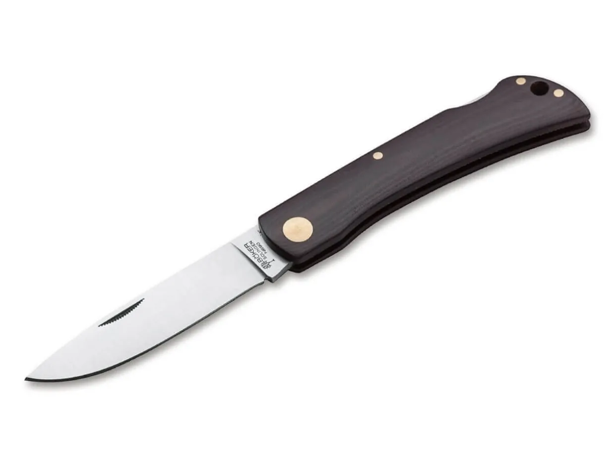 The Rangebuster Is A Traditional Pocket Knife That Was Developed In The Usa For Use In Agriculture As Early As The 18Th Century. The Light And Comparatively Simple Knife Is Reminiscent Of The Solingen Hippekniep, But Here It Is Equipped With A Reliable Backlock. The Satin-Finished Droppoint Blade Of Ice-Hardened N690 With 60 To 61 Hrc Is Flat-Ground And Is Opened With The Help Of The Traditionally Serrated Nail Nick. The Handle Material Is Reddish-Brown Micarta Linen And The Decorative Rivets Are Made Of Brass. Thanks To The Contoured Handles And The Slim, Lightweight Construction, The Boker Rangebuster Is Extremely Comfortable In The Hand And Thus Creates The Transformation From A Working Knife To A Gentleman’S Knife. Handmade In The Boker Knife Manufactory Solingen.