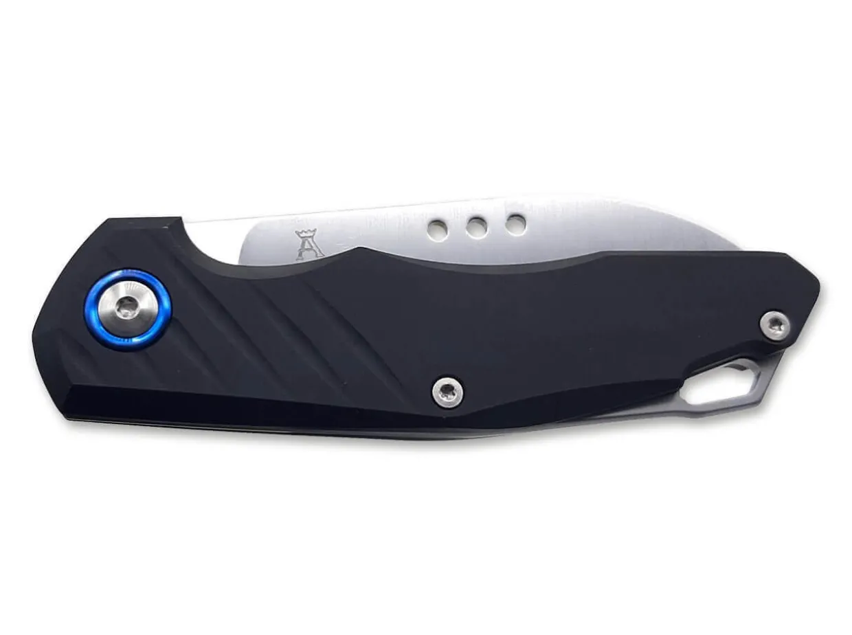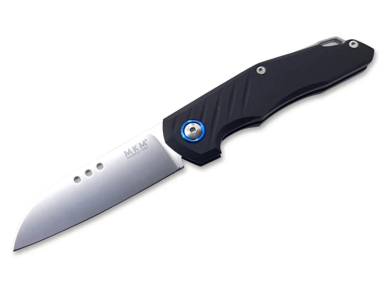 Mkm Goes Back To Basics With The Root. The Classic Slipjoint Pocket Knife Has An M390 Blade That Offers Good Edge Retention. There Are Three Small Holes In The Blade For Opening The Knife. The Black Aluminum Handle Has An Ergonomic Shape And Features A Lanyard Hole. Without Clip.