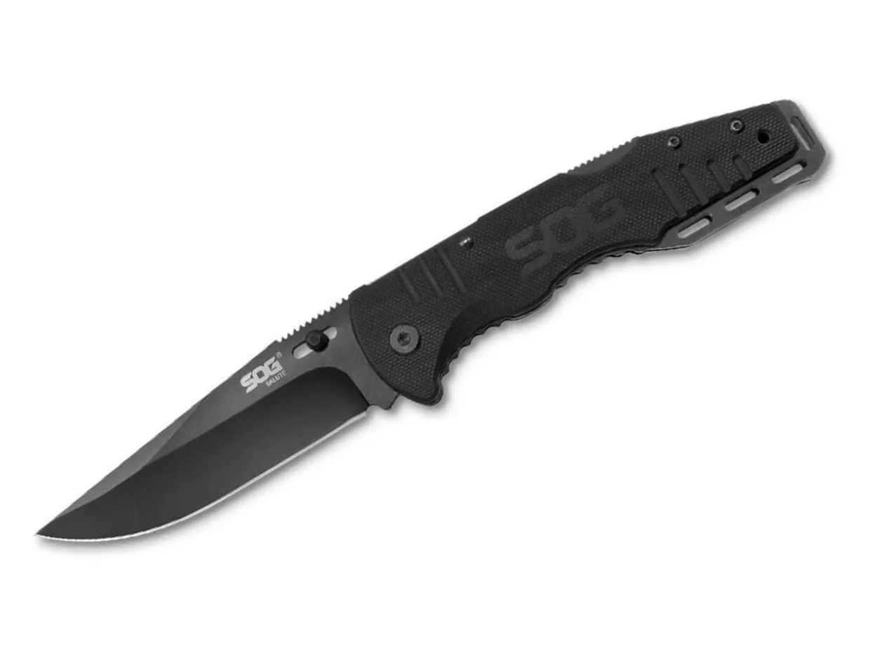 The Sog Salute Is A Sturdy Tactical Folder Which, Thanks To Its Structured G10 Handle Scales, Lies Securely In The Hand Even In Bad Weather Conditions. The Coated 8Cr13Mov Blade Locks With A Backlock And Is Opened Using The Movable Thumb Stud. With Deep Carry Clip (Tip-Up) And Lanyard Hole.