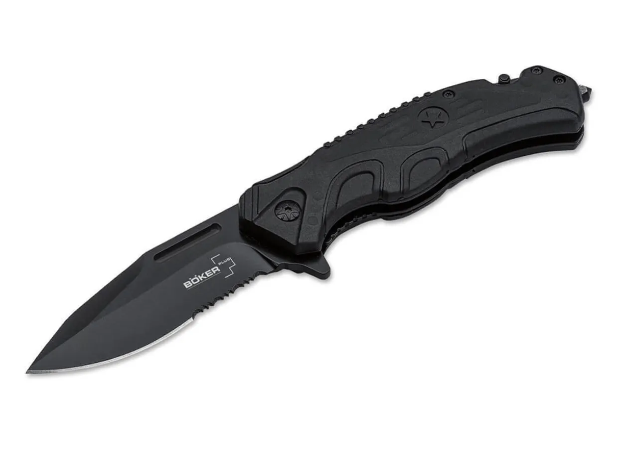 The Rescue Knife Series Boker Plus Savior Is Intended For Private Users Who Want To Be Equipped In The Event Of An Accident To Help Themselves Or Others, But Also For Professional Users Who Carry The Knife On The Job As A Rescue Tool. Solid Steel Liners Carry Fiberglass-Reinforced Plastic Scales That Feature Directly Overmolded Grip-Enhancing Black Tpr Rubber Inlays In Strategic Places. This Provides Secure Handling Even In Wet Or Cold Conditions And In Stress Situations. The Replaceable Glass Breaker On The Pommel Reliably Punctures Any Side Glass Panel, While The Retractable Belt Cutter Allows Belts To Be Cut Even Close To The Body Without Risk Of Injury. Blade With Partial Serration And Flipper. The Knives Feature A Removable Clip (Tip-Down). Shipped With Premium Nylon Belt Pouch.