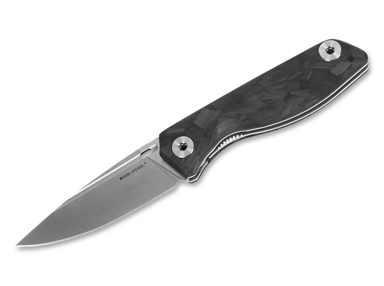 The Sidus Free By Real Steel Is A Modern Pocket Knife With A Very Special Look. The Ergonomic Handle Of The Knife Designed By Poltergeist Works Is Made From Wild Carbon Fiber With Integrated Fluorescent Glow In The Dark Elements. Combined With The Flowing, Harmonious Shape, The Knife Takes On A Truly Extraordinary Look. The D2 Stainless Steel Blade Is Opened With Two Hands Using A Nail Nick And Is Secured With A Linerlock. With Clip (Tip-Up) And Lanyard Hole.