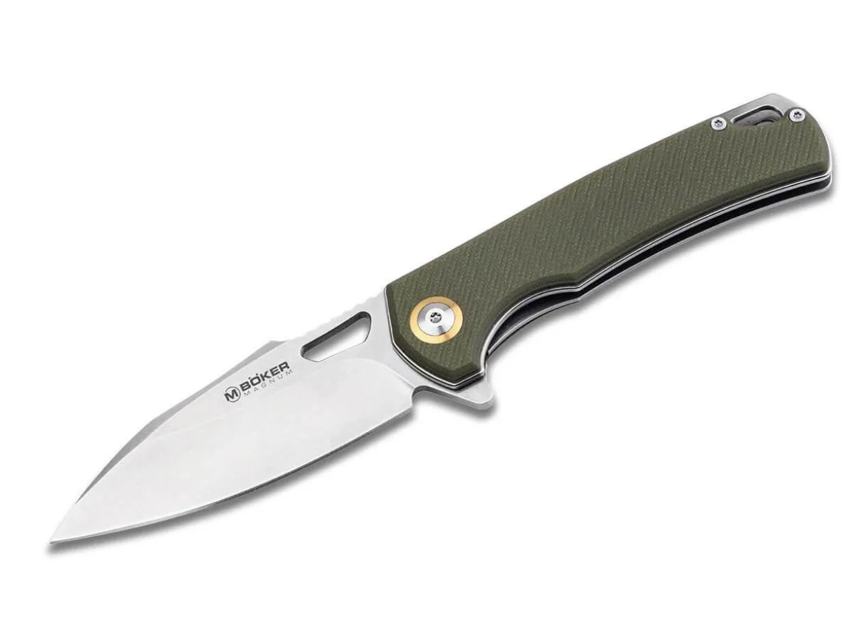 Based On Skeksis, A Fictional Creature As A Mixture Of Bird Of Prey, Reptile And Dragon, Magnum Presents Itself As An Eccentric Pocket-Knife With Exceptional Good Performance. The Ball-Bearing And Beak-Like Blade Takes Up The Skeksis In Shape And Efficiency, So That Even Difficult Cutting Tasks Are Mastered Effortlessly. The Folder Opens Either By Flipper Or Thumb Hole, While The Stainless–Steel Linerlock And Jimpings On The Back Of The Blade Ensure Uncompromising Work Safety. The Textured Handle Scales Made Of Green G10 Resemble Reptile Skin And Ensure A Comfortable Grip. The Brass Ring Flanking The Blade Axle Screw Is A Visual Highlight. Supplied With A Lanyard Hole And A Tip-Up Clip (R).