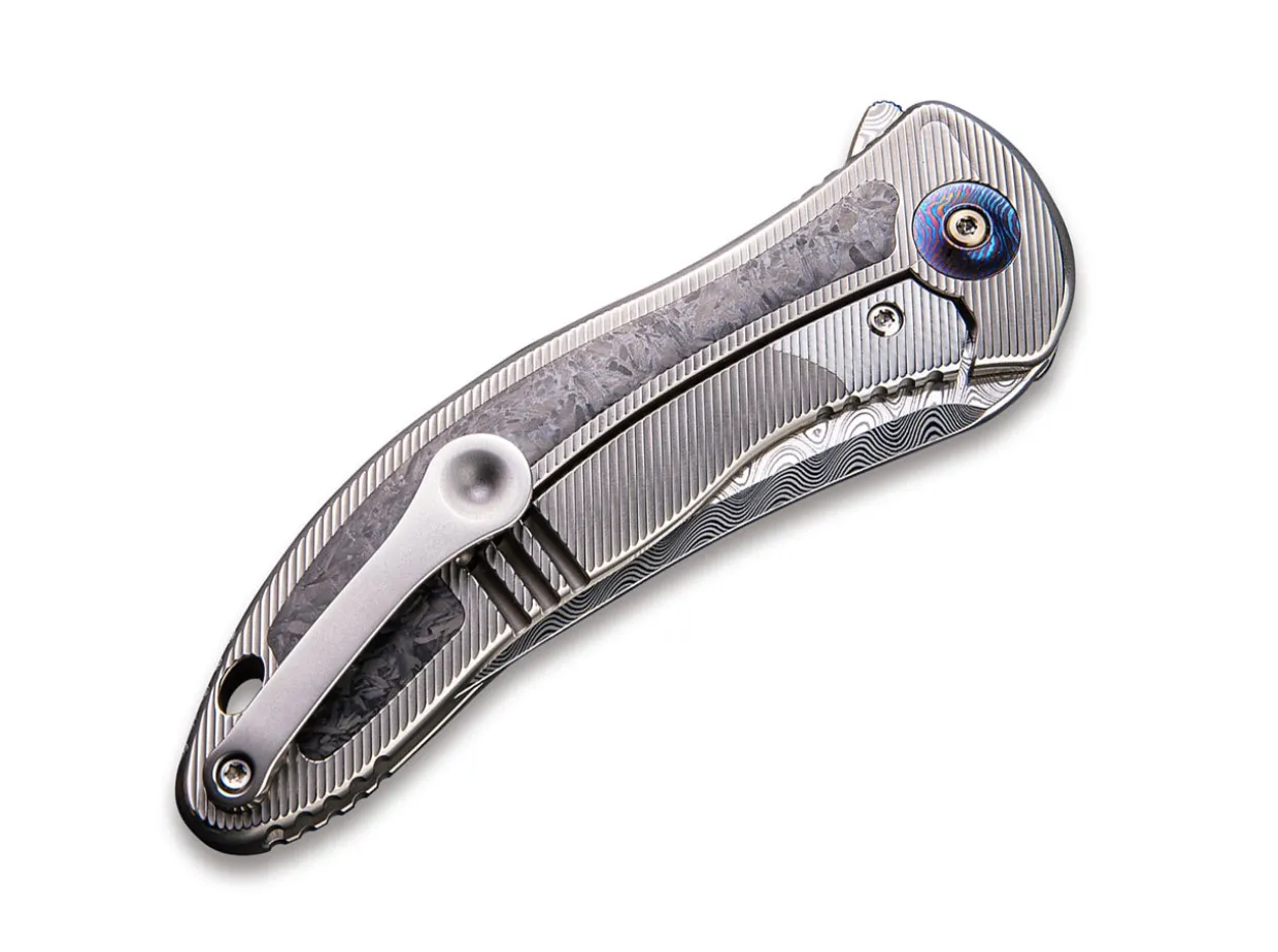 The Synergy 2 By We Knife Is A New Version Of The Synergy, Which Won An Award At The 1999 Blade Show. We Knife Has Partnered With Well-Known Designer Jim O’Young To Update The Synergy 2 Series And Introduce Creative New Designs. The Reengineered Synergy 2 912Cf-Ds1 Has A Ball Bearing Mounted, Hakkapella Damascus Steel Blade, Which Opens With A Flipper. The Contoured Titanium And Carbon Fiber Handle Feels Comfortable And Secure In The Hand And Gives The Knife A Classy Look. The Pivot Cap, Clip (Tip-Up) And Screws Are Also Made Of Titanium. With Lanyard Hole.