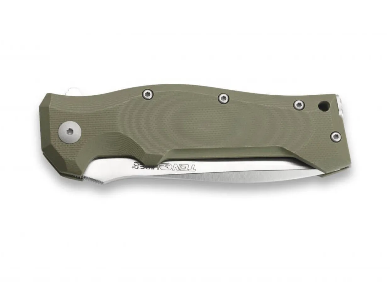 The Viper Ten Is A Modern Folder With A Hybrid Spring That Locks The Blade As A Further Development Of The Linerlock. Titanium Nib With Steel Overlay. The Handle Scales Are Made Of Green Canvas Micarta. The Satin Blade Is Made Of N690 And Is Opened By Flipper. The Convertible Clip (L/R, Tip-Up) Completes The Equipment.