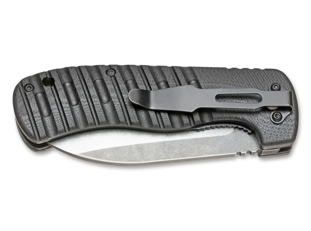 The Two Handed Fat Jack Sports Fine Workmanship But Is Still A Rugged Utility Knife. The Blade Of 440A Steel Requires Two Hands To Open, Has A High Taper And An Appealing Two-Tone Finish. The G10 Scales Have Milled Grooves On Both Sides. The Clip Is A Practical Addition.